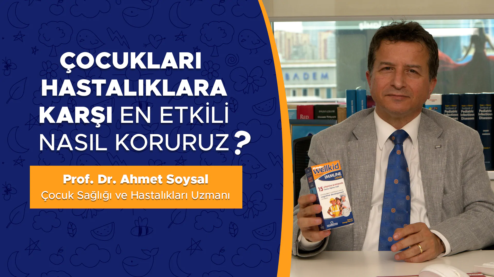 Çocuk sağlığı ve çocuk enfeksiyonu uzmanı Ahmet Soysal ile çocukları hastalıklara karşı en etkili nasıl koruruz konusunu konuşuyoruz. C vitamini, Çinko ve B vitamini kompleksleri dahil 15 besin maddesi içeren Wellkid Immune Liquid, içerisindeki D vitamini ile de bağışıklık sisteminin normal fonksiyonlarına katkıda bulunur.