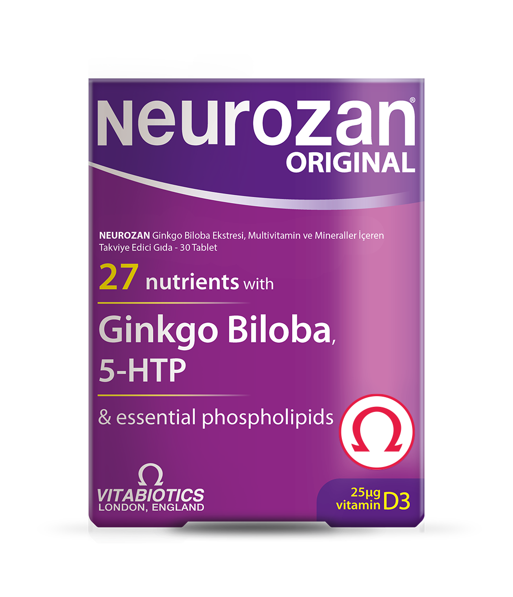 Neurozan®, B kompleks vitaminleri, demir, iyot, çinko, magnezyum gibi vitamin minerallere ek Ginkgo Biloba, 5-HTP, L-Arginin, Fosfatidilserin, Fosfatidilkolin, Glutatyon, Koenzim Q10, ve L-Glutamin gibi özel besinleri de içeren geniş kapsamlı bir gıda takviyesidir.