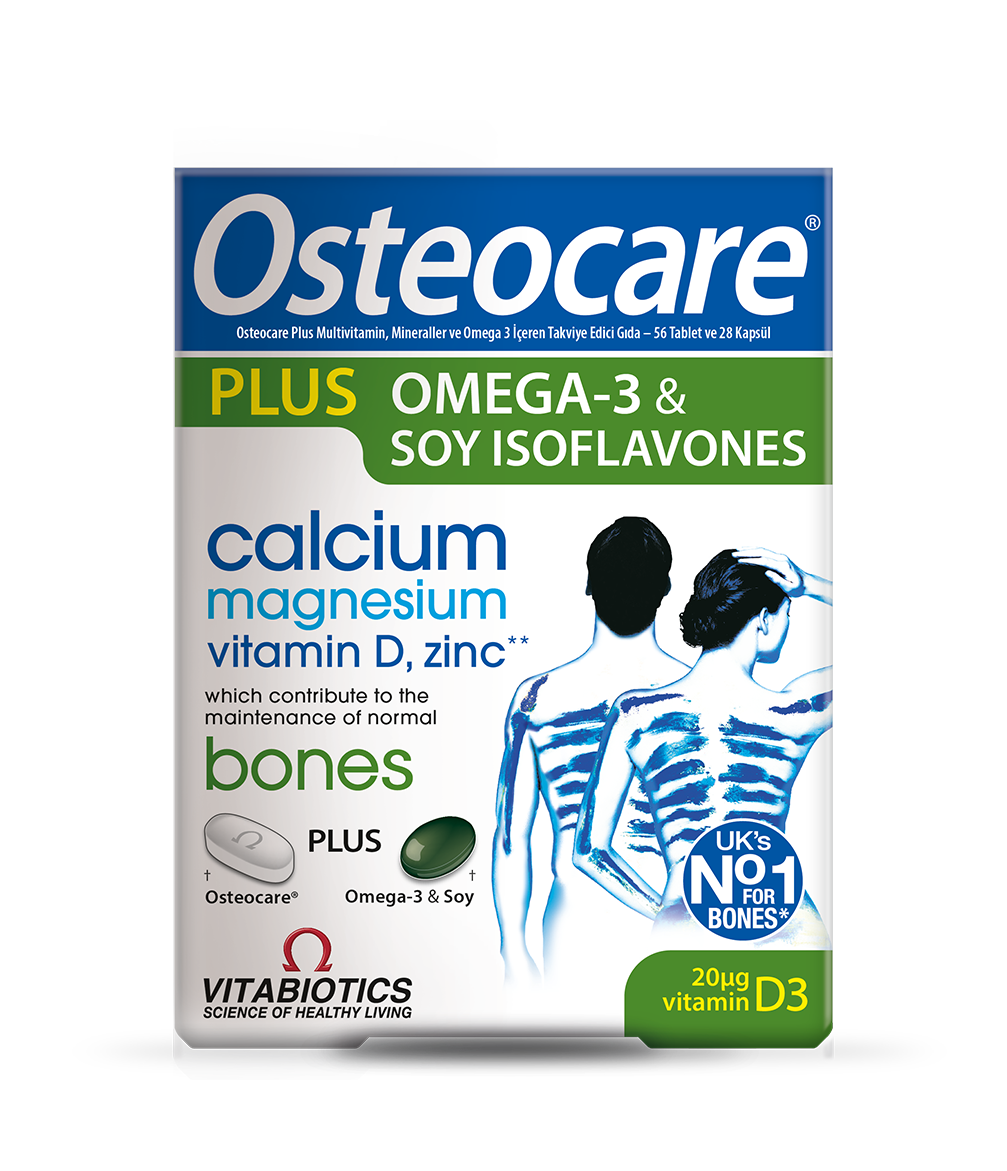 Osteocare® Plus, içerdiği Kalsiyum ve kofaktörlerine ek olarak Omega-3 ve Soya İzoflavonları içermektedir**. Bu nedenle Osteocare® Plus, ileri dönem kemik sağlığını desteklemek için dizayn edilmiştir.